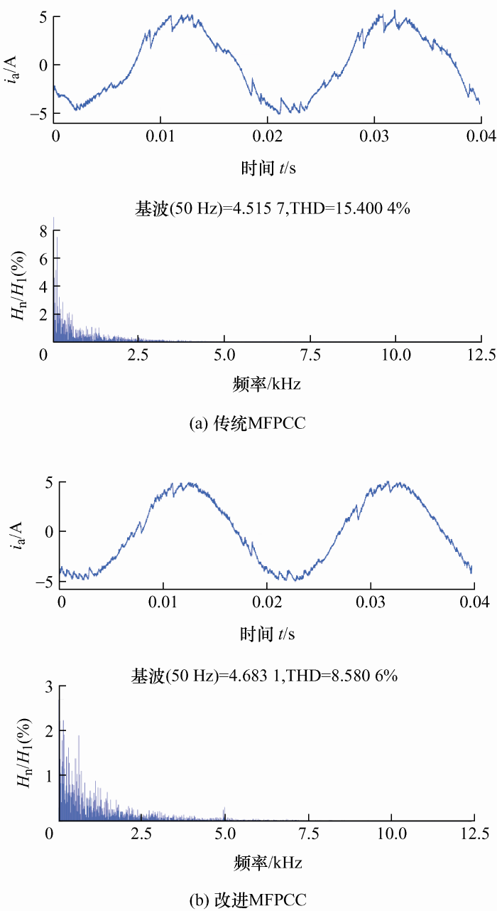 ... [20],但是要求在一个控制周期内对电流进行两次采样,这增加了硬件采样次数.文献[21]提出在一个控制周期内只需要进行一次电流采样的改进MFPCC,降低了对硬件检测的要求.MFPCC的一个关键参数是LUT的更新频率.如果频率过低,某一特定电压矢量引起的电流差分在较长时间内没有更新,存储的电流差分信息是不可靠的,会影响电流预测精度,长时间的更新停滞甚至会影响系统的稳定性[22].为了解决这个问题,文献[22]提出了一种简单的提高更新频率的方法,对电流差分LUT施加一个较小的刷新频率,如果在预定义的时间周期内没有施加某个电压矢量,它将被强制施加到之后的控制周期.这在一定程度上解决了电流差分更新停滞的问题,但忽略了电压矢量最优检测,以增加电流纹波为代价来获取更新信息.文献[23]采用与最新的三个基本电压矢量对应的电流差分来更新其他电压矢量的电流差分,需要一个序列识别算法和更新规则,将210个可能的向量组合分成6组,但这大大增加了算法的复杂度,并且只有当有三个不同的电压矢量时,才能激活此更新机制. ...