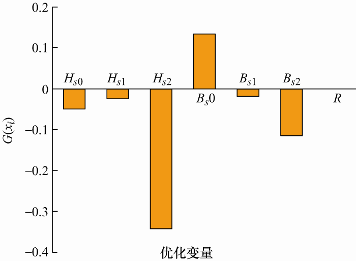 对优化变量进行敏感度分析,根据优化变量对优化目标的影响程度,筛选出主要的优化变量。本文采用综合敏感度[19]G(xi)对优化变量进行筛选,表达式为