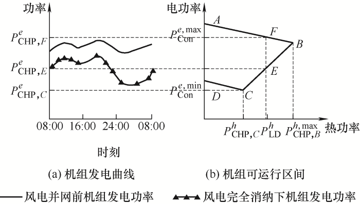 综上所述,热点机组“以热定电”的约束限制提高了机组的强迫出力,对应系统最小出力增大,系统留给风电的上网空间减少,从而产生了弃风。而解决风热冲突的主要思路如下:一是无法消纳的风电外送,但外送输电网建设周期长、成本高、技术难度大,难以大范围开展;二是解耦热点机组“以热定电”的约束,充分利用火电参与调峰的潜能,提高系统的调峰能力,实现本地消纳[16]。
