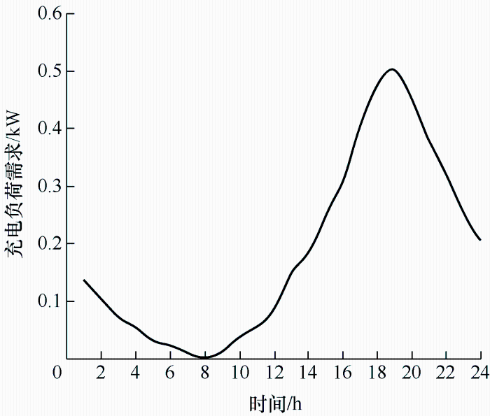 根据开始充电时间t0、充电持续时长Tch,采用蒙特卡洛模拟法对单台电动汽车一日内的充电负荷需求进行拟合,结果如图2所示。
