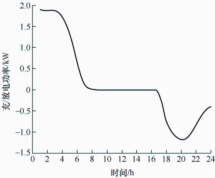 策略2:电动汽车有序充放电模式下,当微电网处于负荷高峰期时,电动汽车作为电源进行放电,反之,在负荷低谷对电动汽车进行充电,从而有效地对微电网负荷进行削峰填谷,提高经济性。