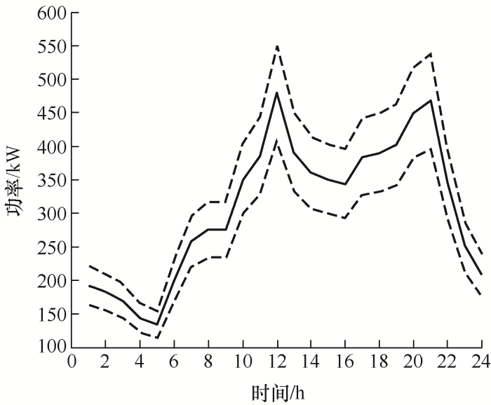 不确定性环境下的微电网经济优化通常采用随机优化和鲁棒优化两种设计方法。文献[9-10]基于随机优化的概率条件,设计了微电网的随机优化方法。其中,文献[9]针对新能源出力的不确定性,以最大化微电网运行效益为目标,建立了模糊机会约束规划模型。文献[10]基于概率论的随机决策模型,采用随机机会约束规划模型对可再生能源和负荷的不确定性进行建模,进而设计随机优化算法优化微电网经济性能。然而,随机优化必须通过大量抽样获得随机场景,才能描述出不确定性精确的概率分布函数,导致繁杂的计算和高昂的成本。考虑到上述方法的局限性,鲁棒优化的方法被提出并运用到微电网设计中,文献[11⇓⇓⇓-15]针对微电网中的不确定性,通过建立不确定性集合,并以尽量减轻性能的恶化风险为目标,采用鲁棒优化方法,优化最恶劣场景下微电网的经济性能。其中,文献[11]采用多个不确定集合的方式描述不确定性,简化了实际应用中对不确定数据的获取;文献[12]将间歇式电源出力的不确定性考虑到常规优化调度模型中,构建了大规模间歇式电源接入的多目标鲁棒优化调度模型。文献[13]利用场景生成法将微电网的不确定性转化为单层优化问题进行求解。文献[14]采用Benders分解法,通过上下层迭代交替求解处理微电网系统的不确定性,给出了多场景鲁棒调度方案。