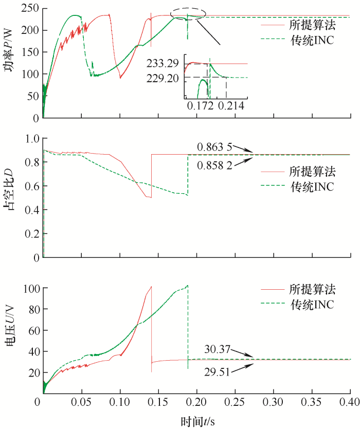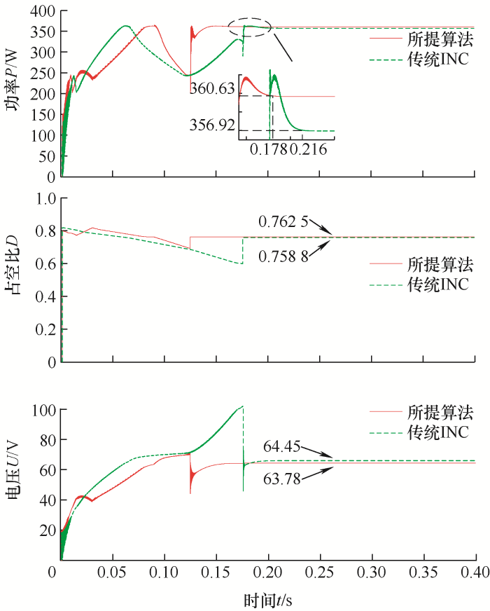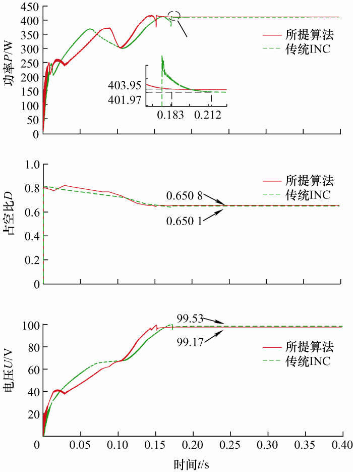 最后,通过仿真分析了在UIC和PSC条件下所提算法的运行状况。结果表明,与传统的INC法相比,该方法追踪更快、精度更高、效率更高。