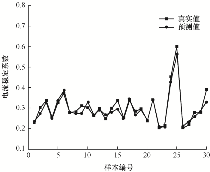 (1) 通过比较SVR、RF、LightGBM和XGBoost模型的预测精度和拟合能力,选出性能最优的XGBoost模型,对其进行参数调优,调优后的GC-XGBoost模型误差更小,拟合能力更强,然后建立电流稳定系数预测模型,进一步证实了模型的优越性。