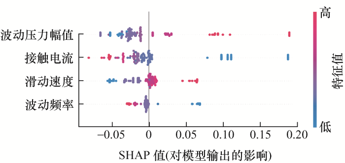 (4) 引入SHAP可解释性分析框架,对GC-XGBoost模型中四个特征与电流稳定系数之间的关系进行解释分析,进一步阐明导致弓网滑动电接触失效的原因以及四个特征对滑动电接触失效的影响程度。