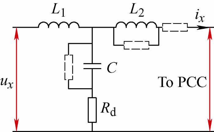 ... 基于滤波电容电流的有源阻尼方法常采用比例反馈方式,算法实现简单.文献[41]中指出,经控制框图等效变换可以发现,反馈滤波电容电流相当于在滤波电容两端并联了一个“虚拟电阻”.根据第3.2.2节的分析可知,该有源阻尼方法可以在不影响滤波器高、低频段滤波性能的情况下有效抑制谐振. ...
