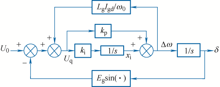 ... 由式(13)~(15)可得由锁相环动态主导的系统模型如图14所示[73],图14中,U0=LgIgd. ...