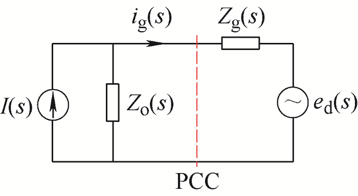 ... 基于阻抗模型的稳定判据是另一种常用的分析方法[32].在阻抗法中,以PCC点为分界,将并网变换器和电网划分为两个子系统.对并网变换器采用诺顿等效电路,即电流源并联阻抗;电网则采用戴维南等效电路.具体地,对应到图5所示模型,为建立并网变换器这一子系统模型,需要推导出ird到id的闭环传递函数以及vd(并网点电压)到id的闭环传递函数. ...
