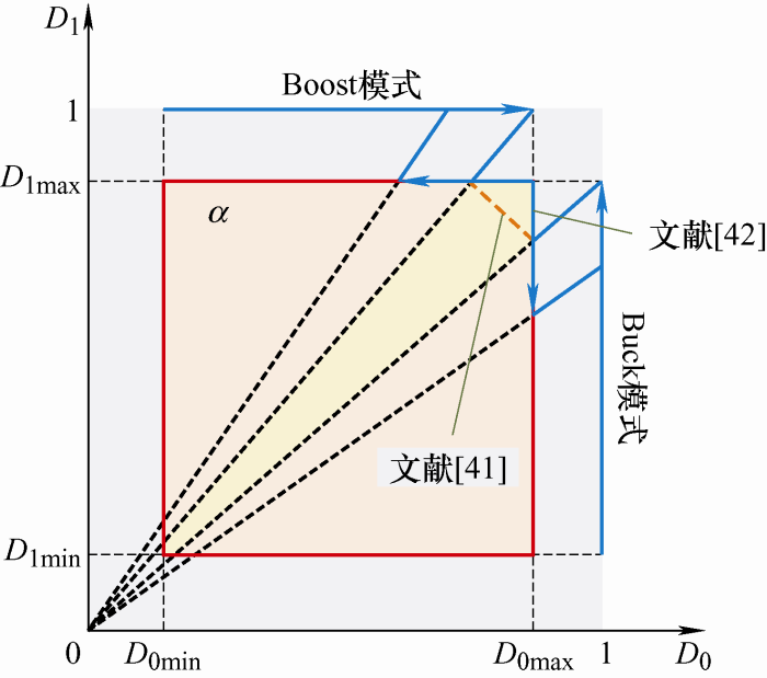 多模式控制策略强调对应模式的设计,通过控制d1和d2,补偿直流增益特性,稳定输出电压,实现模式间平滑过渡[28]。具体模式设计过程围绕“占空比重叠与钳位”思想展开。