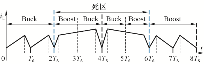 为了解决模式切换问题,针对死区内占空比不连续以及直流增益断续的情况,较为普遍的解决方案是引入新的模式,研究多模式控制策略,实现死区内有效控制,进而消除死区。现有的研究中,实现平滑模式切换,主要集中在输出特性的补偿,兼顾变换器动态性能的提升。