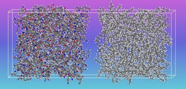 为了更加系统地理解变压器内油纸绝缘系统热老化,本文构建了油纸混合绝缘多分子系统,研究系统中主要小分子产物的类型,与实际变压器内老化产物做对比,模型如图5所示,左侧为绝缘纸,右侧为绝缘油。