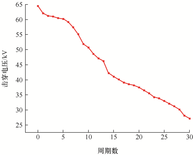 (3) 将制备好的试样置于50 Pa/120 ℃的条件下进行加速热老化试验,老化周期为2 d,共进行30个老化周期。