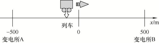 选取一个完整的供电区间,建立地铁单条线路仿真模型,列车及变电所的相对位置如图4所示。