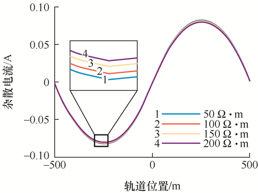 (2) 土壤通过对混凝土电阻率的影响,间接影响了杂散电流大小;轨地过渡电阻是杂散电流大小的决定性因素,轨地过渡电阻的改变对杂散电流的影响巨大。