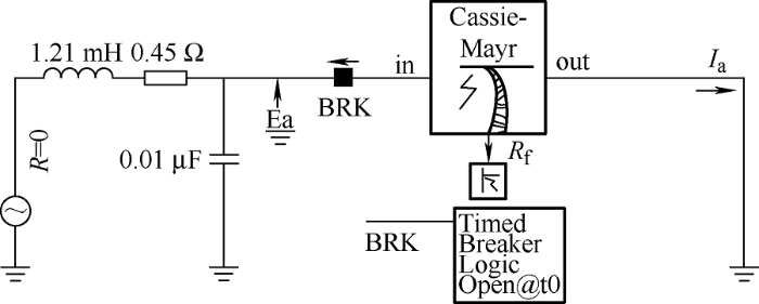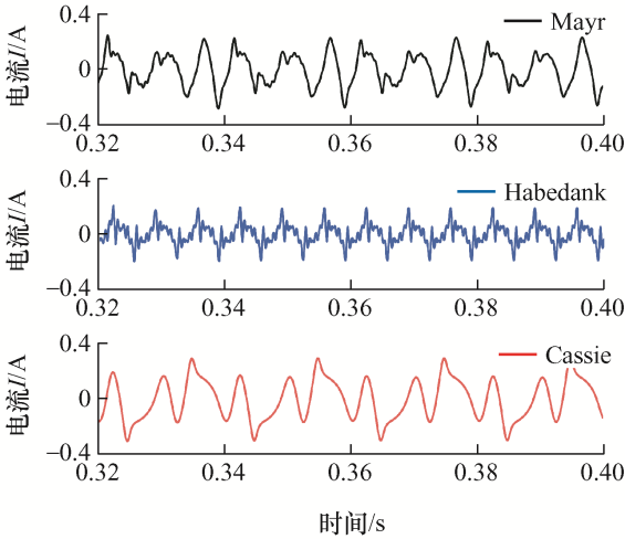 式中,g c 和θ c 为Cassie电弧模型的电导和时间常数;u c 为电弧电压常数;g m 和θ m 为Mayr电弧模型的电导和时间常数;P 0 为电弧耗散功率。