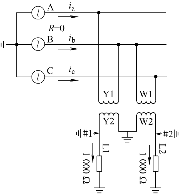 本文讨论了电力系统中使用三相变压器的直接回流供电系统的建模,仿真模拟同一供电臂下单列车的运行情况[16 -17 ] 。该系统的参数如表1 所示。建模过程还包括使用模块来模拟变电站和根据表1 定制各种元素参数。建模涉及到集成电压源、脉冲发生器和其他模块的构建,包括电压和电流的多个测量模块。图6 是V/v变压器的模拟图。