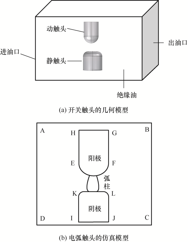 近年来,仿真软件发展迅速,有限元仿真软件具有精度高、边界适应性好等特点,能够计算出瞬态和稳态的数据,为试验提供了便利,针对电弧的有限元仿真也发展起来。文献[8]针对真空断路器中产生的大电流真空电弧,基于磁流体动力学(Magnetohydrodynamics,MHD)理论建立了电弧等离子体物理模型,并研究了在外界轴向磁场的作用下真空电弧的动态特性。文献[9]以MHD理论为基础,考虑电弧的基本物理特性及电磁效应、热效应和辐射效应,建立了静态弓网电弧二维磁流体动力学模型,仿真计算了电弧的温度场分布,得到了电弧弧柱和两电极内部的温度分布特性。文献[10-11]对弓网系统静态升降弓过程所产生的弓网电弧特性开展了研究,综合电场、热场和磁场的计算,建立了弓网系统静态升降弓时的弓网系统二维模型,仿真分析了不同弓网间隙和不同接触网廓型情况下的电弧温度场分布情况及弓网电弧稳态燃烧特性。以上的电弧研究都是在空气介质中,对绝缘油中电弧放电特性和温度分布的研究较少。