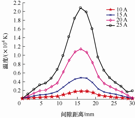 3.4 不同电流下的电弧温度分布