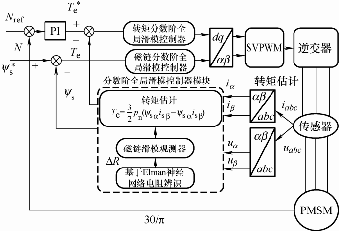 基于分数阶全局滑模和磁链观测器的PMSM DTC系统框图