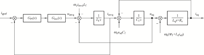 (9) G q ( s ) = ( K p s + K i ) ( C f L s s 2 + C f R s s + 1 ) s ( T d s + 1 ) [ L f C f L s s 3 + L f C f R s s 2 + L f + L s s + R s ]