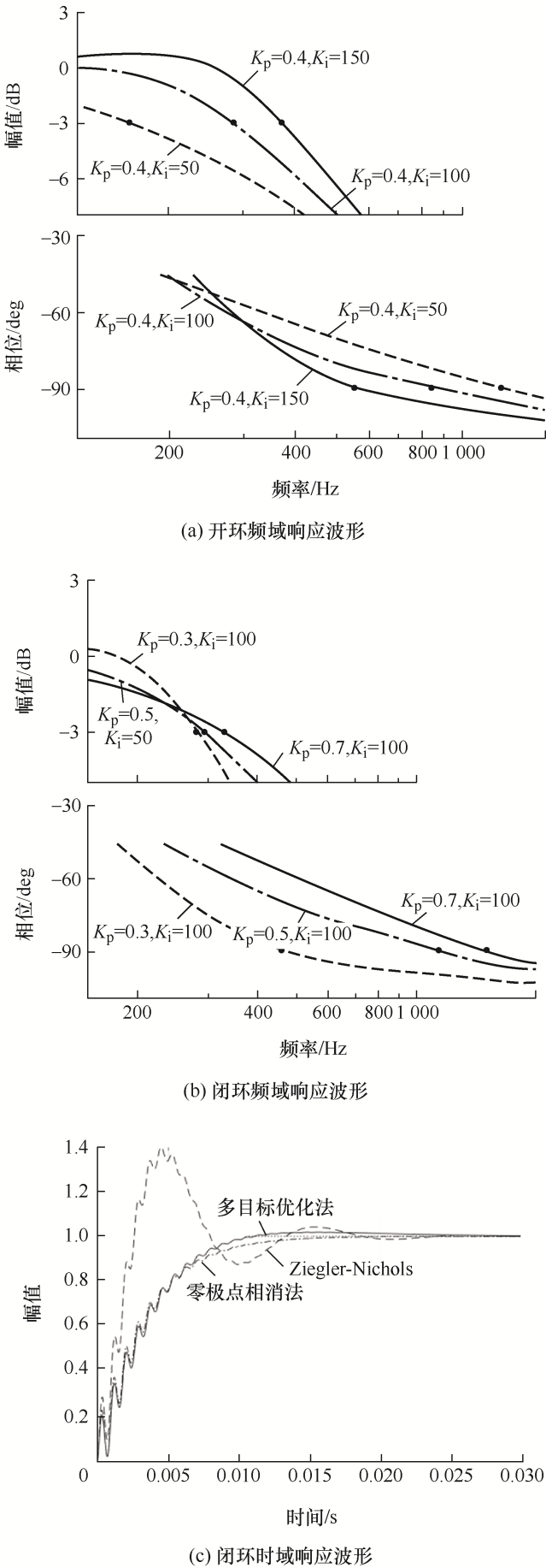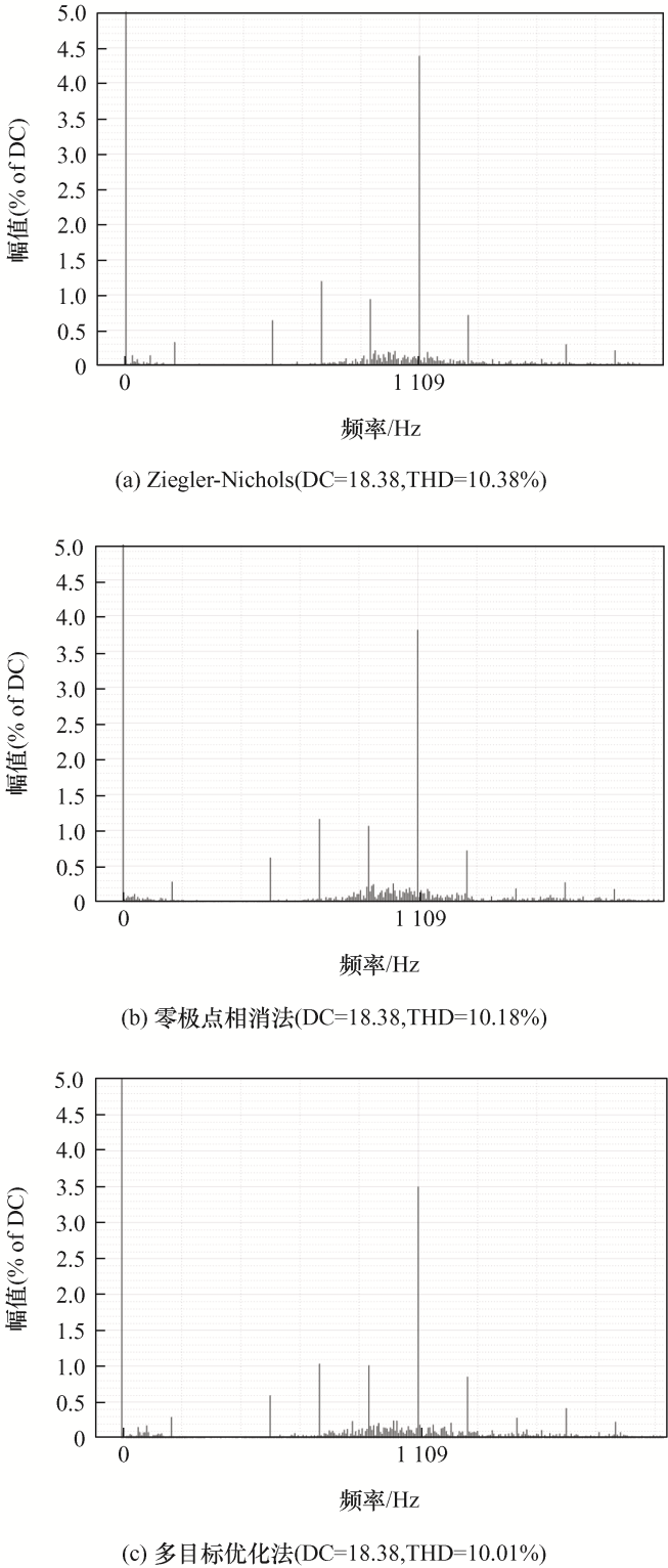 (1) 多目标优化方法可兼顾超调量、带宽、谐振、谐波、上升和调节时间等系统多个性能指标,传统Ziegler-Nichols法及零极点相消法则难以做到。