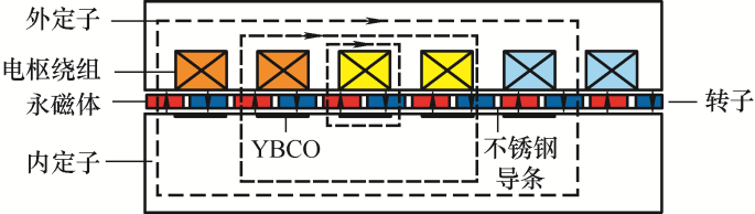 近年来迅速发展起来的高温超导材料为电机设计提供了新思路,其零电阻特性和完全抗磁性是高温超导材料的两个基本特性。本文基于高温超导材料的完全抗磁性,将其引入内定子侧并对其具体尺寸进行优化,以达到减少漏磁提高电机性能的目的。