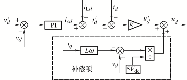 式中,${{\tau }_{i}}$ 是时间常数,K 是比例系数,${{{i}'}_{dq}}$ 是输出电流的参考值。