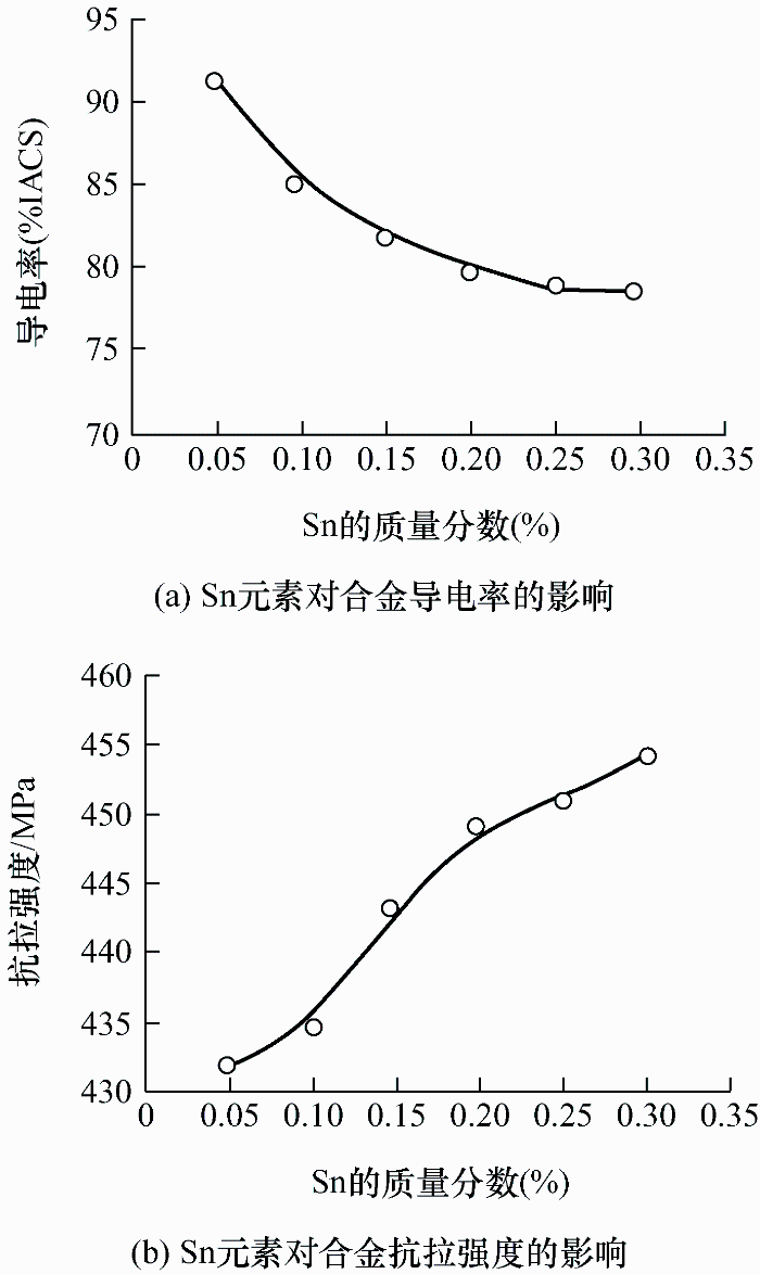 ... Sn元素在铜中的固溶度很大,具有固溶强化效应,在铜中添加适量的Sn元素可以提高铜合金的强度、硬度和耐腐蚀性能.相比Cu-Ag合金导线,添加Sn元素形成的Cu-Sn合金接触导线的制造工艺简单,成品率较高,价格便宜.铜锡合金接触线曾在电气化铁路上广泛使用,日本接触导线主要就以铜锡合金为主,1997年,日本利用铜锡合金接触线,实现了300 km/h的目标[16]. ...