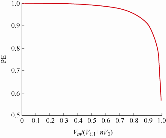 功率因数PF与Vm /(VC 1 +nV 0 )的关系曲线