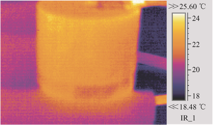 式中,E 为被测物体表面向外辐射的热量;T 为物体表面温度;A 为辐射表面积;σ 为黑体辐射常数;ε 为物体发射率。由于电容器表面材料发射率较低,会影响热红外成像仪测量的精度,因此,为了降低使用红外成像仪所带来的误差,使用发射率为0.95的黑色辐射涂料对封装表面进行均匀涂抹。观察热成像仪,待示数稳定后,得到如图10 所示的热传感器图像。
