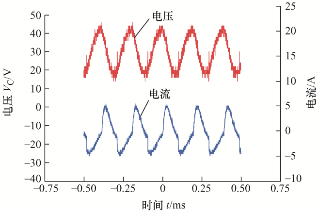 在高频充放电试验条件下,测得温度稳定状态下电容器电压电流波形如图11 所示。