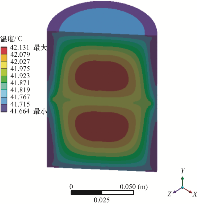 电容器温度场截面仿真结果(T 0 =40 ℃,I =5 A)