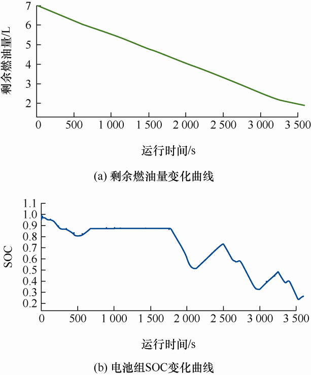 其他参数包括,燃油的性能参数:密度ρ fuel =0.82 kg/L,热值ζ fuel =43.1 MJ/kg,热效率η pt =25%。动力电池组的性能:电池单体能量密度达到250 (W·h)/kg,充电倍率v B,C =2C ,放电倍率v B,dc =0~5C ,5~10C (100 s)。
