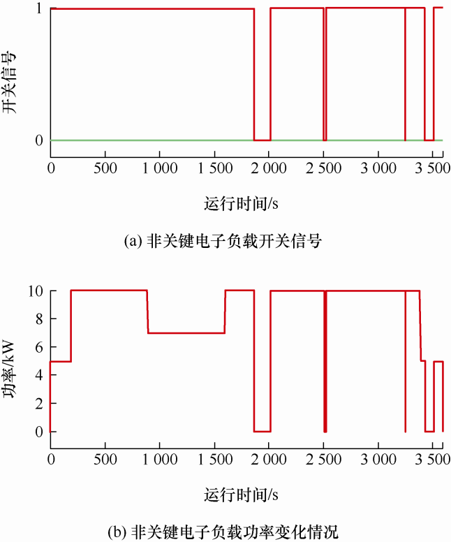 即开关量状态信号作为控制信号时,是根据顶层MPC控制器决定的,是一种基于未来滚动优化而做出的系统决策。当电推进飞机负载功率需求逐渐增大时,要求发电机组输出更多的能量,这时可提前投入双发电机和电池组进行供能;如果负载需求更大时,提前切除非关键电子负载可有效达到需求功率以完成预定飞行任务。