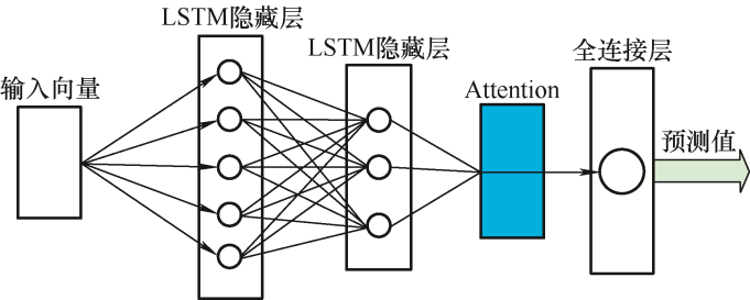 Attention机制是一种模拟人脑注意力的模型,根据风电功率数据输入的每一项特征对输出风电功率预测值的影响来为神经网络中的隐层状态赋予不同的权重。主要原理是通过保持LSTM层对输入序列建模时每一步的中间输出结果,并将它们与输出风电功率的值联系起来,从而训练模型选择性地关注输入功率数据,为相关性更高的功率输入向量赋予更高的权重,具体原理如图2 所示。