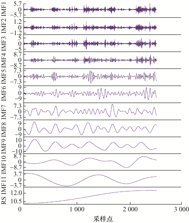 (9) x ( n ) = ∑ k = 1 K I M F k ( n ) + R ( n )