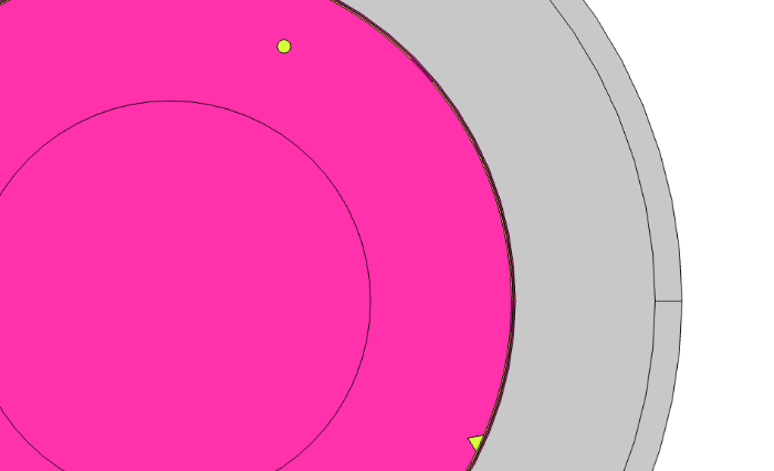 楔形划痕缺陷容易出现在电缆接头制作时,施工装配过程中的物理外力作用致使XLPE表面出现破损划痕,仿真模型中的楔形划痕设置在XLPE电力电缆的绝缘层中,其截面为一个边长为1.5 mm的等边三角形,划痕区域的相对介电常数设为1,楔形划痕缺陷仿真模型如图10 所示。
