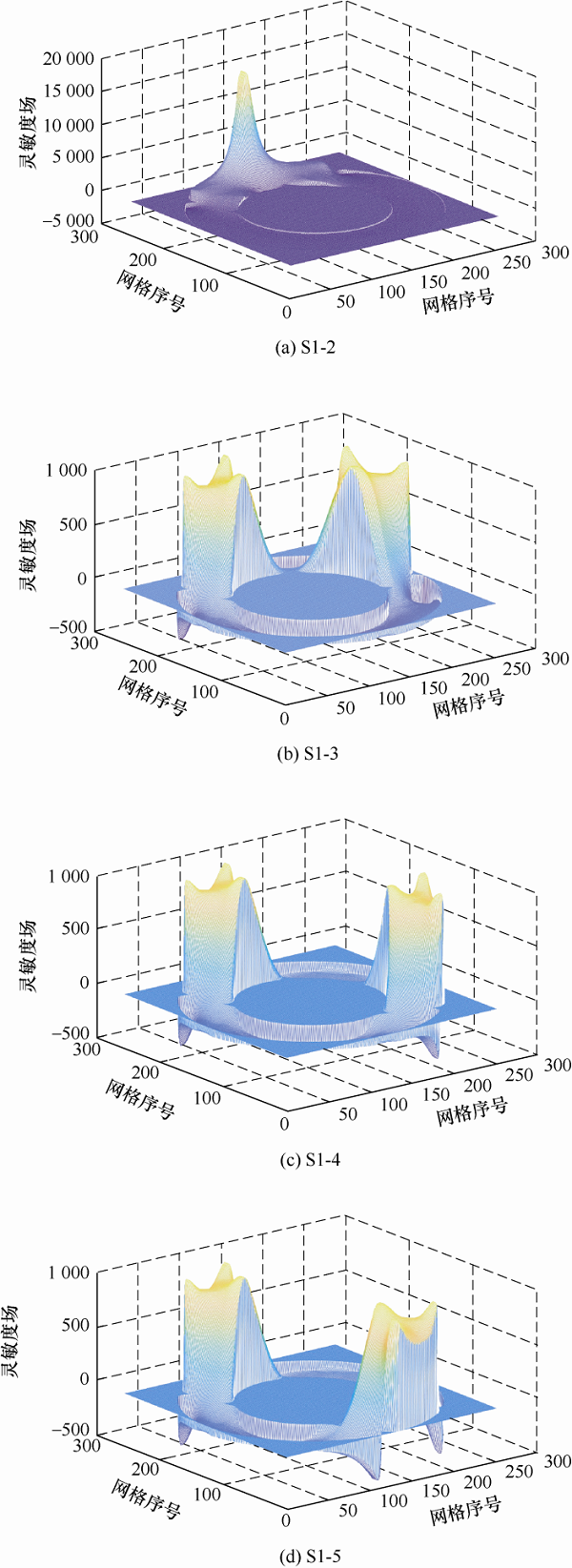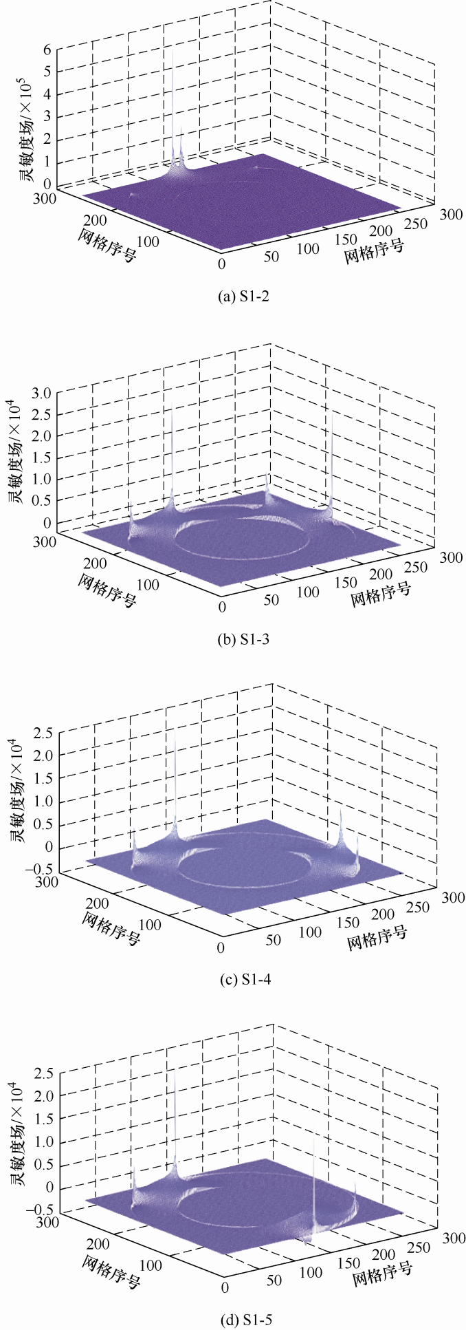 采用中值滤波算法,以滤波单元输出的灵敏度中值代替原单元的灵敏度,得到优化后的灵敏度场如图7 所示。