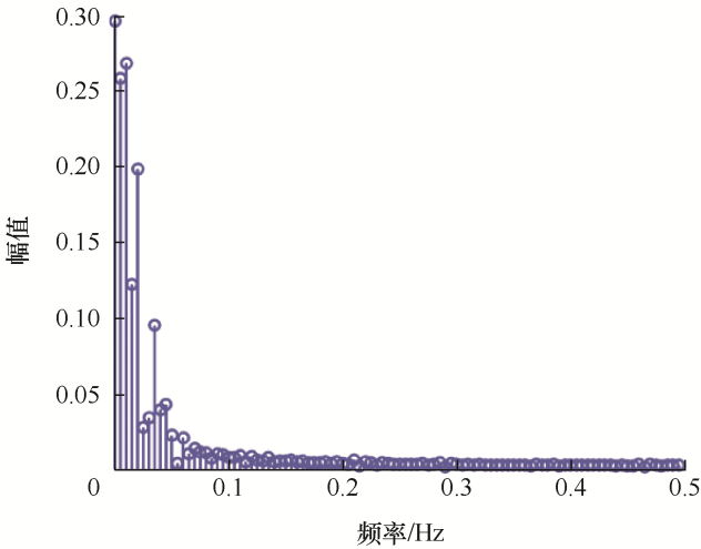 综合实测和仿真数据的频域分析结果,选取0~0.02 Hz内的特征数据进行FFT结果相关性分析,相关系数C 的计算方法如下