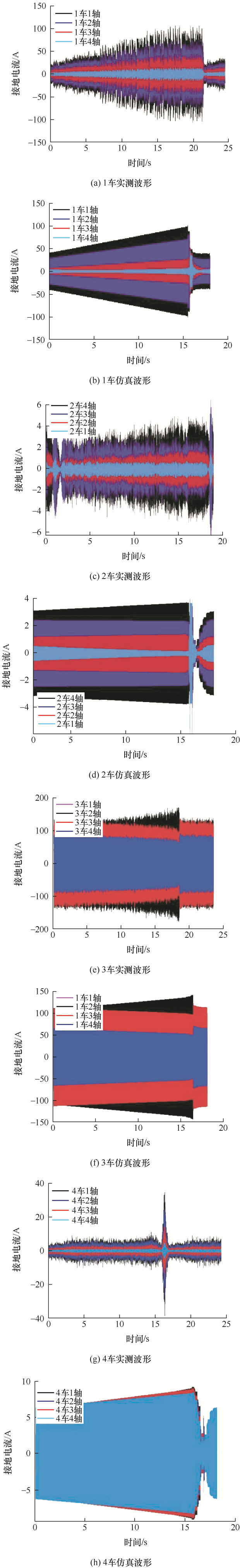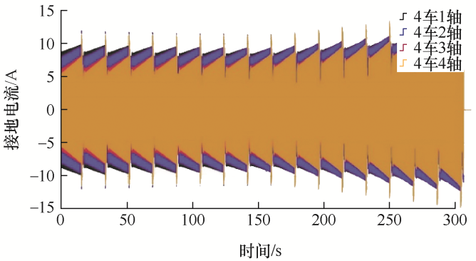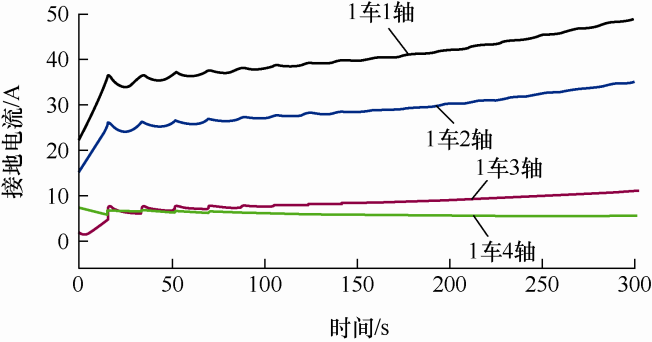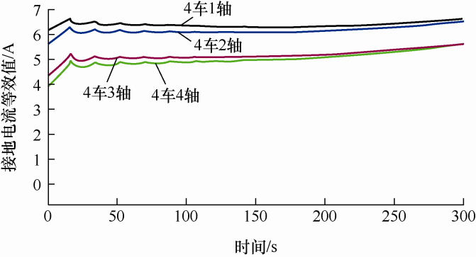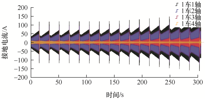 因为市域列车车体的结构是对称的,1、2、4车1~4轴的保护接地电流变化趋势分别与8、7、5车保护接地电流相似,所以只需要分析1、2、4车的保护接地电流。