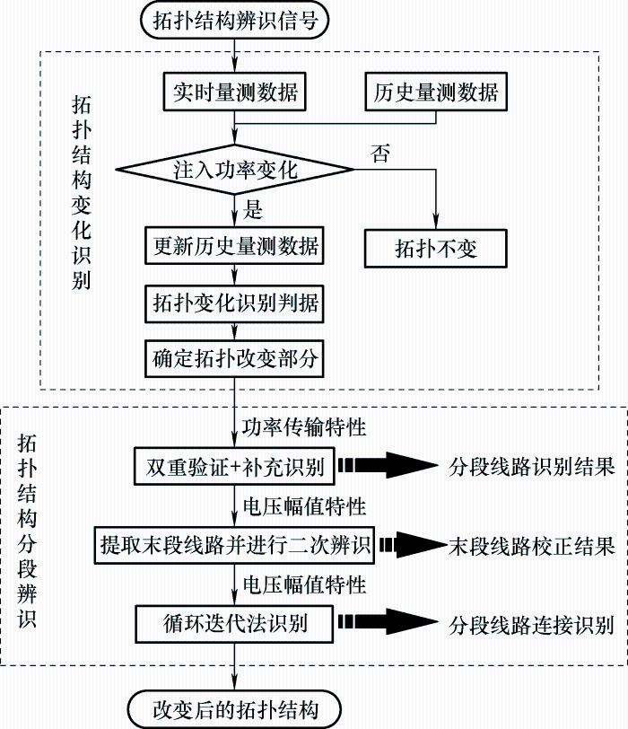 分布式电源的接入改变了配电网的功率传输特性和节点电压幅值特性。本文提出拓扑结构辨识方法分两步进行。
