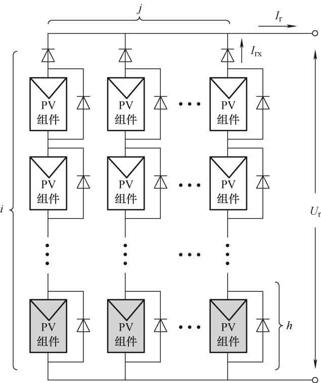 对于一个包含i行j列光伏组件的光伏阵列,当光照均匀时,其输出特性为