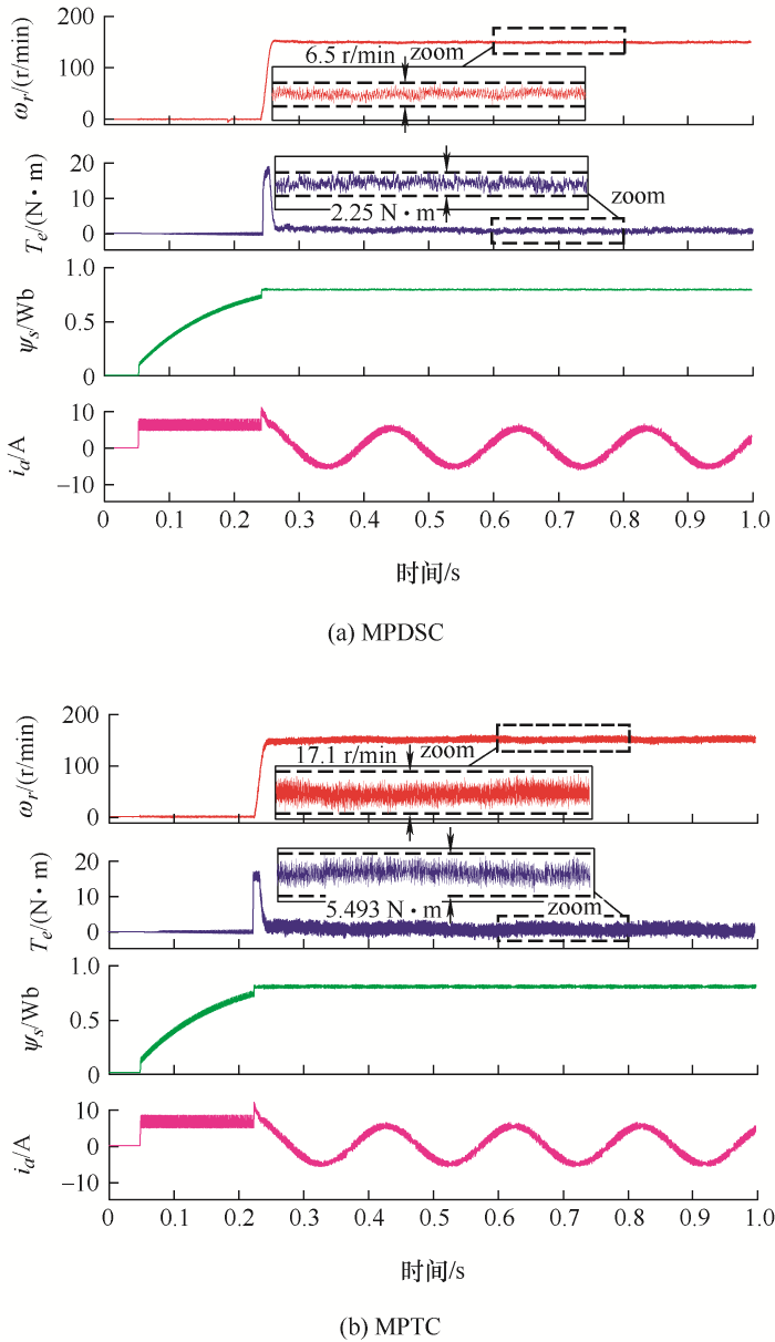 本文提出的MPDSC采用定子磁链和转子转速作为控制目标,消除了传统MPTC中的级联结构,相比现有方法减少了需要调整参数的个数,试验结果表明所提方法提高了系统的稳态性能。