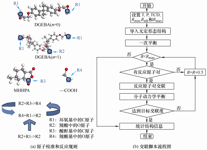 考虑环氧树脂与酸酐反应中酯化与醚化的竞争过程,借助Materials Studio软件实现环氧树脂-酸酐体系交联结构的模拟,其构建过程如图3所示。