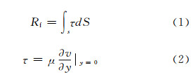 其中,Rf为摩擦阻力,N;τ为摩擦切应力,Pa;v为速度,m/s;μ为流体粘度,Pa·s;y为到航行体的垂直距离,m;S为航行体与水接触面积,m2[6]。